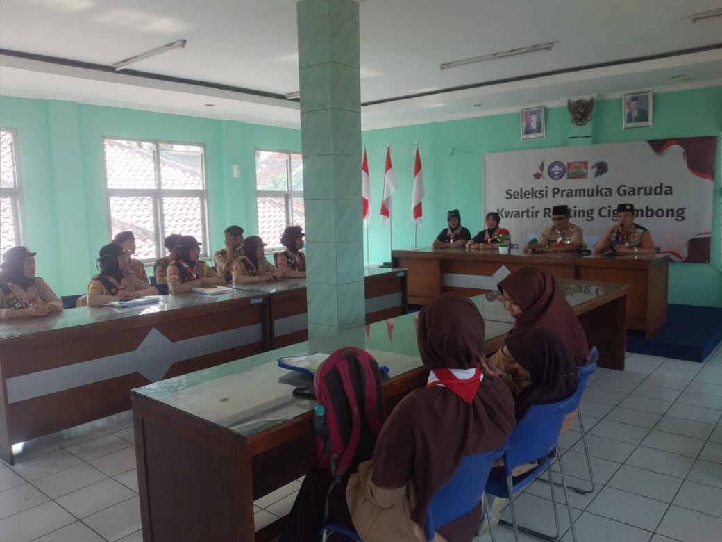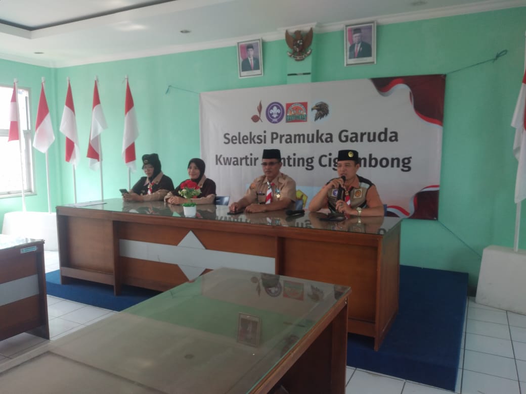 Waka Bina Muda Kwartir ranting Gerakan Pramuka Cigombong Wawan Gunawan membuka secara resmi kegiatan seleksi pramuka Garuda tingkat Kwartir ranting tahun 2023 digedung serba guna kantor kecamatan Cigombong,sabtu (5/11/2023)