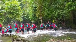 Di lapangan, wisatawan terlihat bergantian mengenakan pelampung dan mengikuti arahan pemandu sebelum memulai aktivitas body rafting. Meski air keruh, suasana ceria dan tawa para pengunjung terdengar di sepanjang aliran sungai.