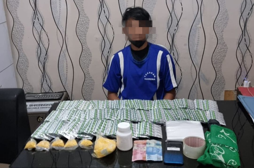 “Dari tangan terduga pelaku, kami berhasil mengamankan barang bukti obat keras terbatas jenis Tramadol dan Hexymer sebanyak 3700 butir, sebuah lakban, Satu unit telepon genggam dan uang tunia hasil penjualan sebesar 150 Ribu Rupiah,” bebernya.