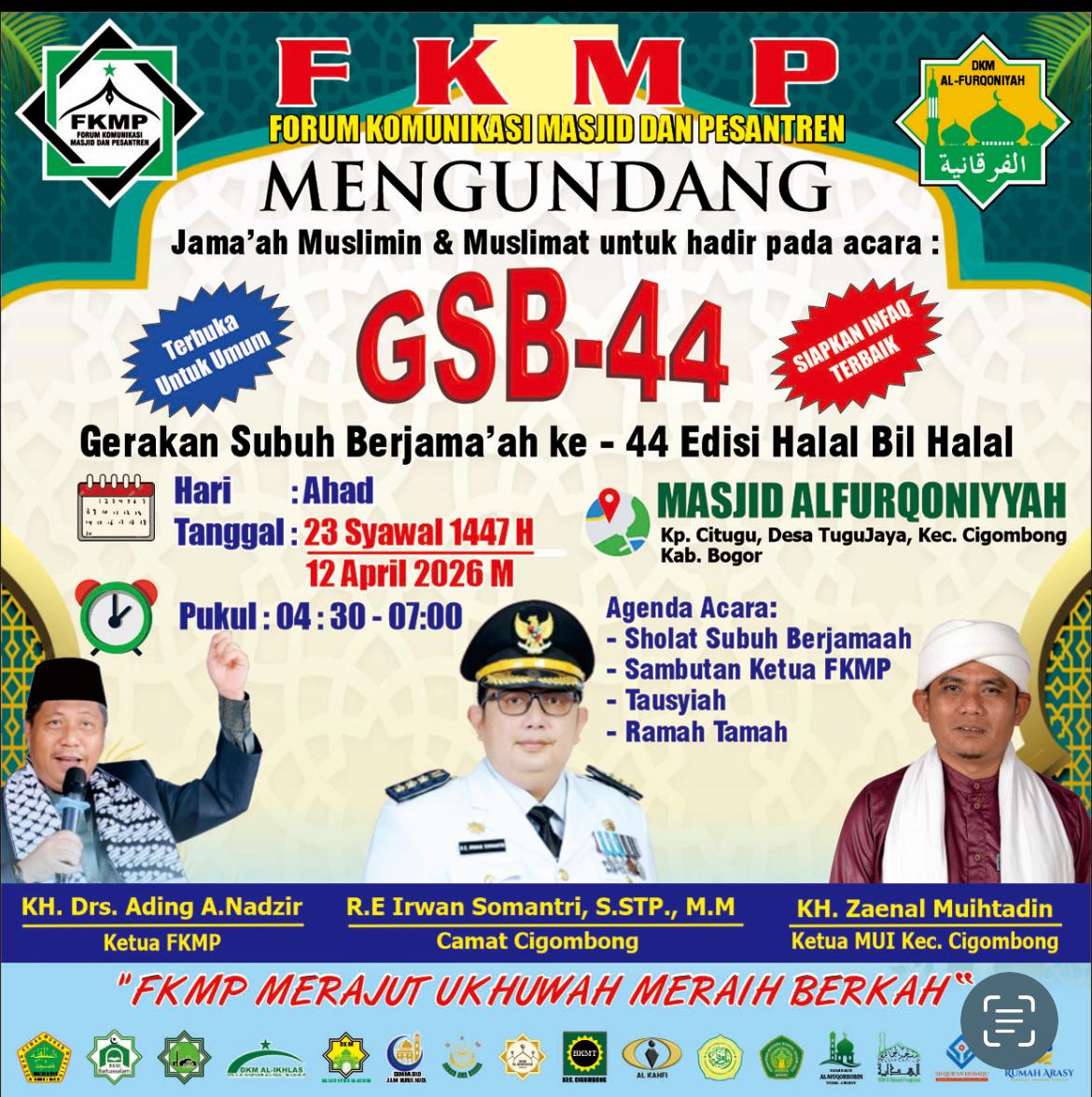 Kegiatan ini selain melibatkan pemerintah, tokoh masyarakat atau ormas Islam juga menghadirkan penceramah seperti yang dilakukan oleh Forum Komunikasi Masjid dan Pondok Pesantren (FKMP) Cigombong pada Minggu subuh (12/04/2026) bertempat di Masjid Al Furqoniyah Kp.Citiugu, Desa Tugu Jaya kecamatan Cigombong kabupaten Bogor.