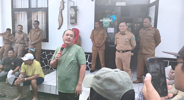 PANGANDARAN, LingkarJabar – Langkah santai Jeje Wiradinata mendadak terhenti di depan Kantor Dinas Pariwisata dan Kebudayaan Pangandaran, Senin pagi, 27 April 2026. Mengenakan kaos olahraga hijau, mantan Bupati Pangandaran dua periode itu mendapati ratusan pengusaha rental All-Terrain Vehicle (ATV) berkumpul dalam suasana tegang. Mereka menuntut kejelasan rencana relokasi yang dinilai sepihak serta tidak selaras dari sisi data.