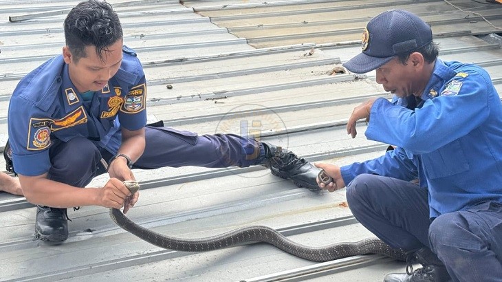 Proses penanganan dipimpin oleh petugas penjinak ular, Ivan Septian atau orang lebih akrab memanggil Ivong Sang Penakluk Ular, yang turun langsung ke plafon untuk menaklukkan King Cobra. Dengan teknik khusus dan penuh kehati-hatian, Ivan berhasil mengamankan ular tersebut.