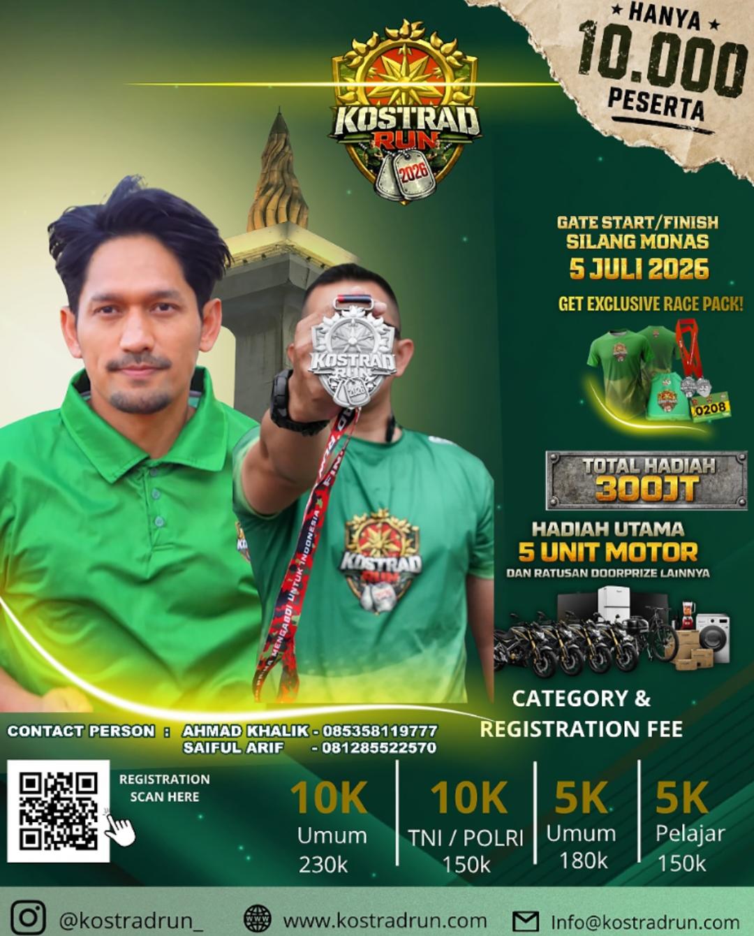Masyarakat yang berminat untuk mengikuti KOSTRAD RUN 2026 dapat melakukan pendaftaran melalui website resmi di (http://www.kostradrun.com) atau dengan menghubungi contact person yang telah disediakan oleh panitia.