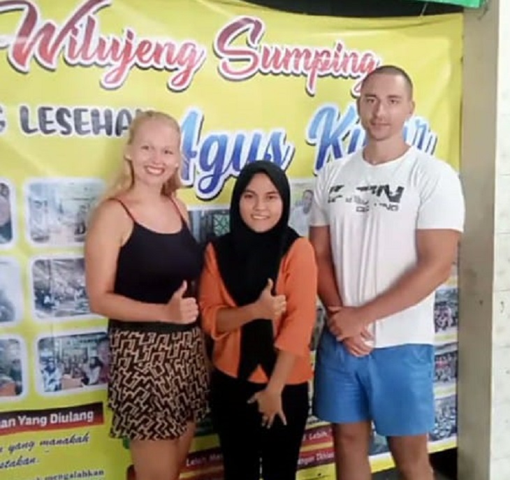 Turis Asing Asal Argentina yang tengah berfose saat makan di Saung Lesehan Agus Kucir.