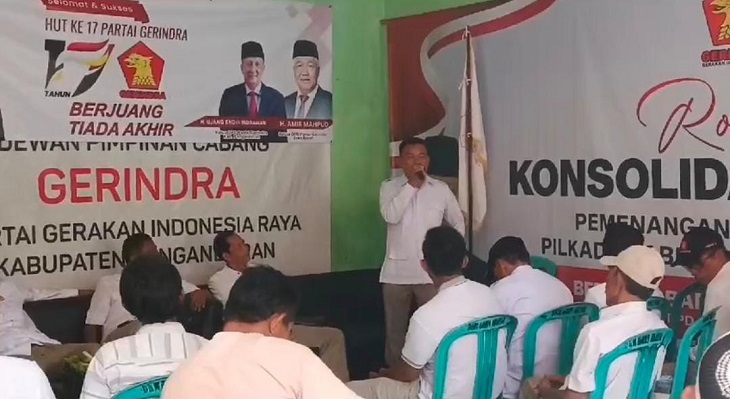 Selain itu, Ketua DPC Partai Gerindra Pangandaran, Ujang Endin Indrawan, turut hadir dan melakukan prosesi pemotongan tumpeng sebagai bentuk rasa syukur atas perjalanan Partai Gerindra selama 17 tahun.