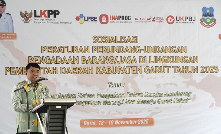 GARUT, LingkarJabar – Bupati Garut, Abdusy Syakur Amin, resmi membuka kegiatan Sosialisasi Pemanfaatan Sistem Pengadaan untuk Mendorong Optimalisasi Pengadaan Barang/Jasa (PBJ) Menuju Garut Hebat yang digelar di Balai Diklat KKBN Kabupaten Garut, Jalan RSU dr. Slamet, Kecamatan Tarogong Kidul, Selasa (18/11/2025).