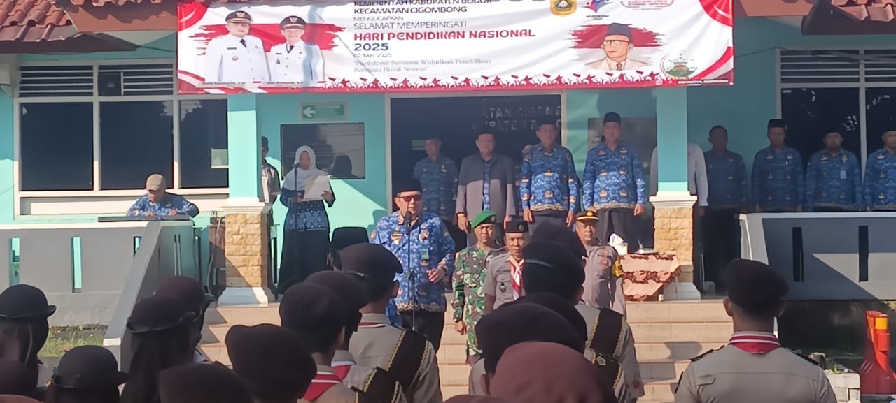 BOGOR, LingkarJabar – Dalam rangka memperingati Hari Pendidikan Nasional (Hardiknas) 2025, Pemerintah Kecamatan Cigombong, Kabupaten Bogor, menggelar upacara bendera yang berlangsung di halaman kantor kecamatan, Jumat 2 Mei 2025. Camat Cigombong, R. Irwan Somantri, bertindak sebagai inspektur upacara yang turut dihadiri para kepala desa, kepala sekolah dari tingkat SD hingga SMA, perwakilan KUA, serta siswa-siswi SD dan SMP.