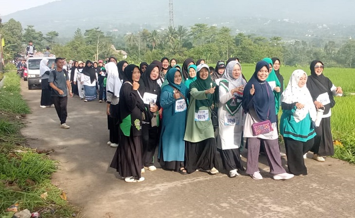 Kegiatan pawai dan jalan sehat tersebut berlangsung dengan penuh semangat kebersamaan. Warga tampak antusias menyaksikan iring-iringan peserta yang membawa atribut bertema Hari Santri Nasional.