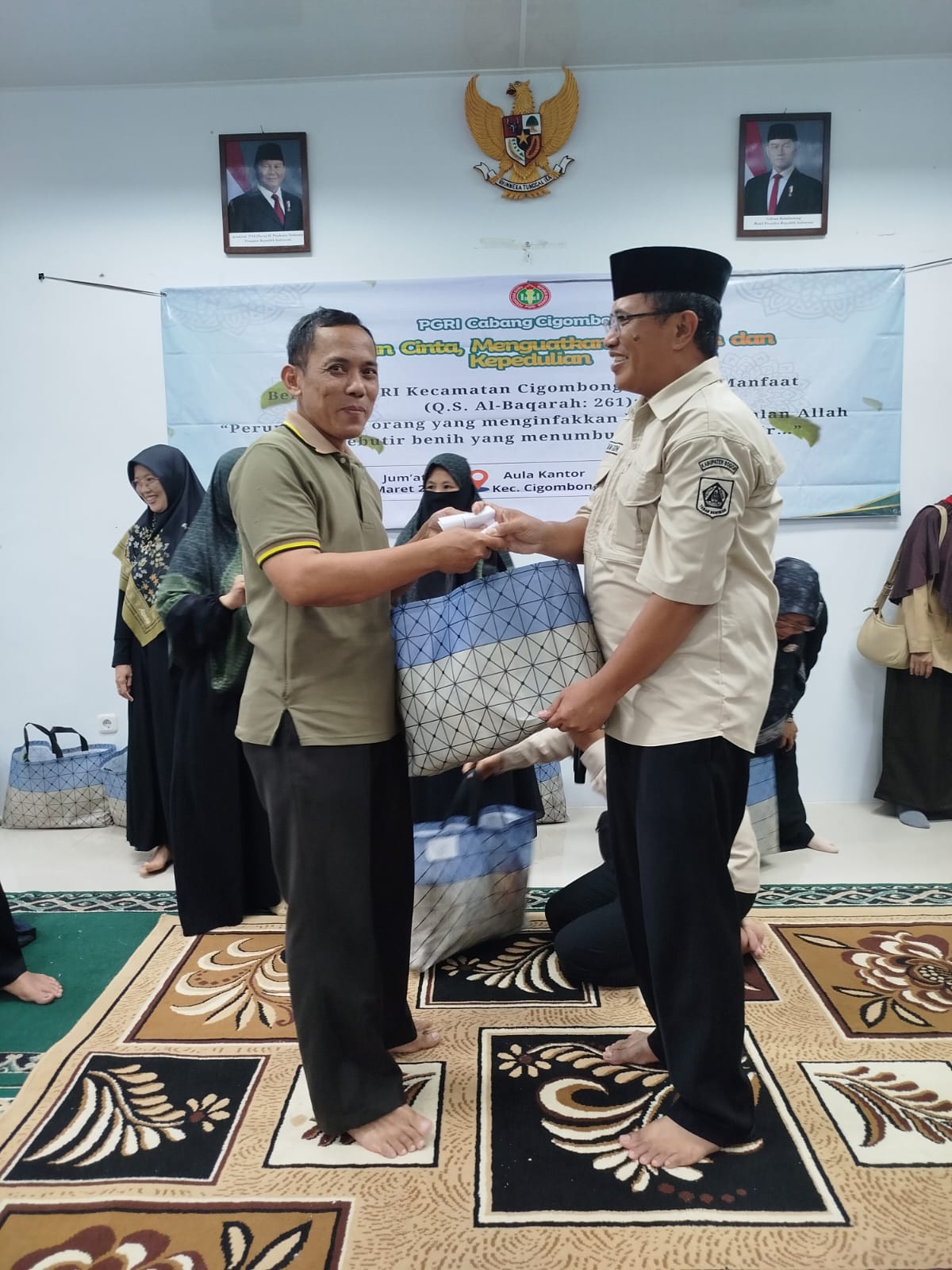Ketua PGRI kecamatan Cigombong, Wawan Gunawan (Wan Gun) menyampaikan bahwa pemberian paket sembako kepada para penjaga sekolah dan juga 3 penjaga kantor kecamatan ini merupakan bentuk solidaritas dan kepedulian anggota PGRI kecamatan Cigombong di bulan puasa sebagai tanda cinta kami kepada mereka