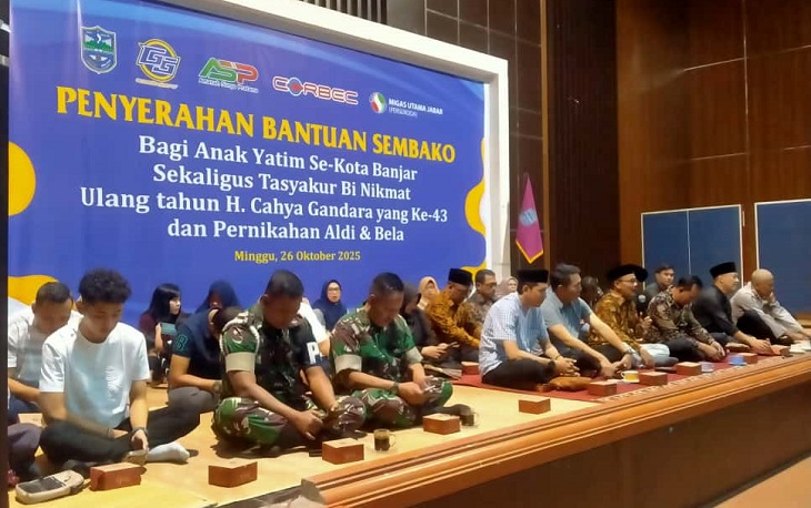BANJAR, LingkarJabar – Pemilik Gandara Grup, Cahya Gandara, menyalurkan bantuan berupa 1.002 paket sembako kepada anak yatim se-Kota Banjar, di Aula Somaha Bagja Dii Buana, Setda Kota Banjar, Jawa Barat, Minggu 26 Oktober 2025.